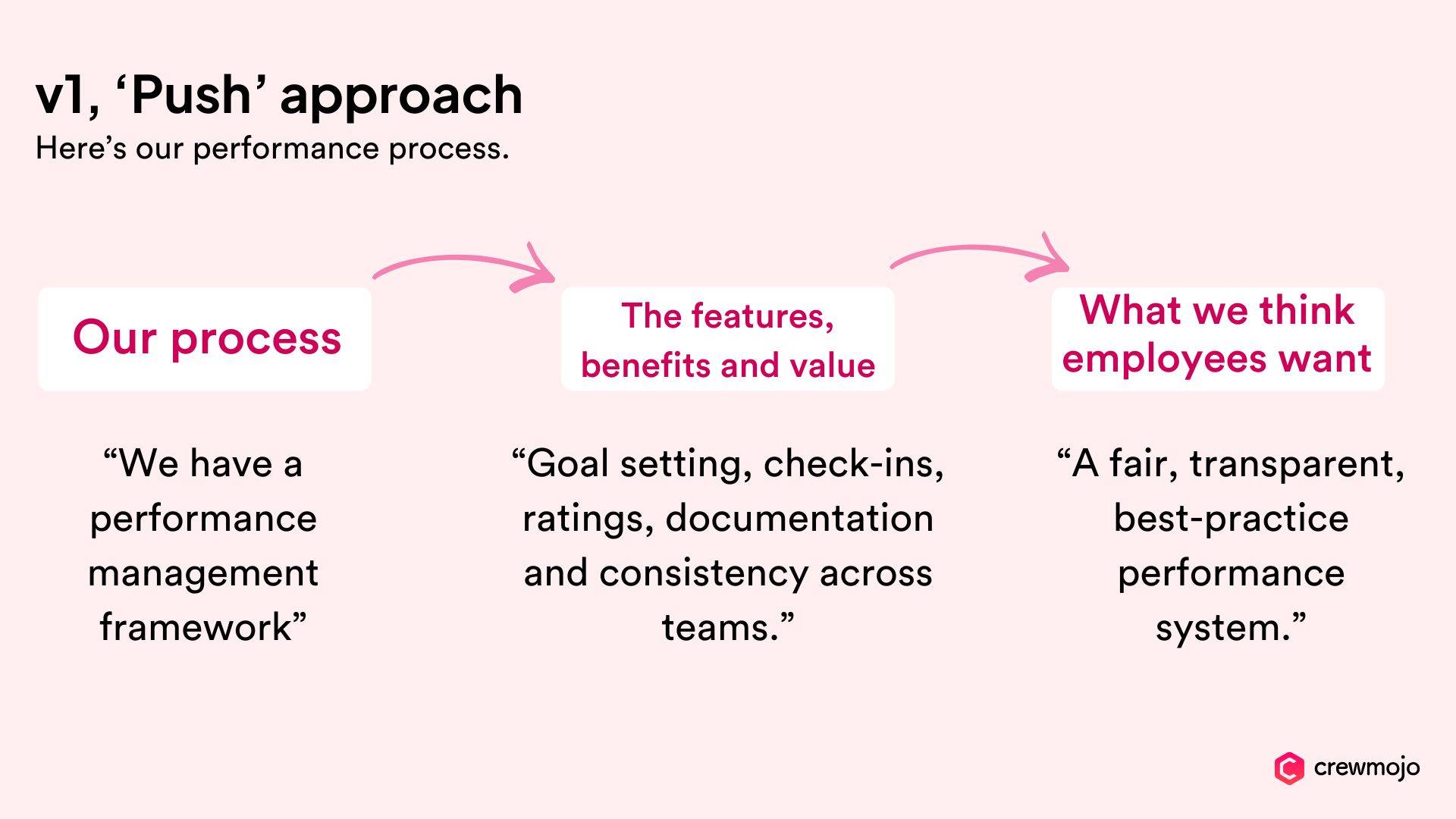 Just as a business needs to find its product market fit with customers, you need to find your performance management “product market fit” with employees.