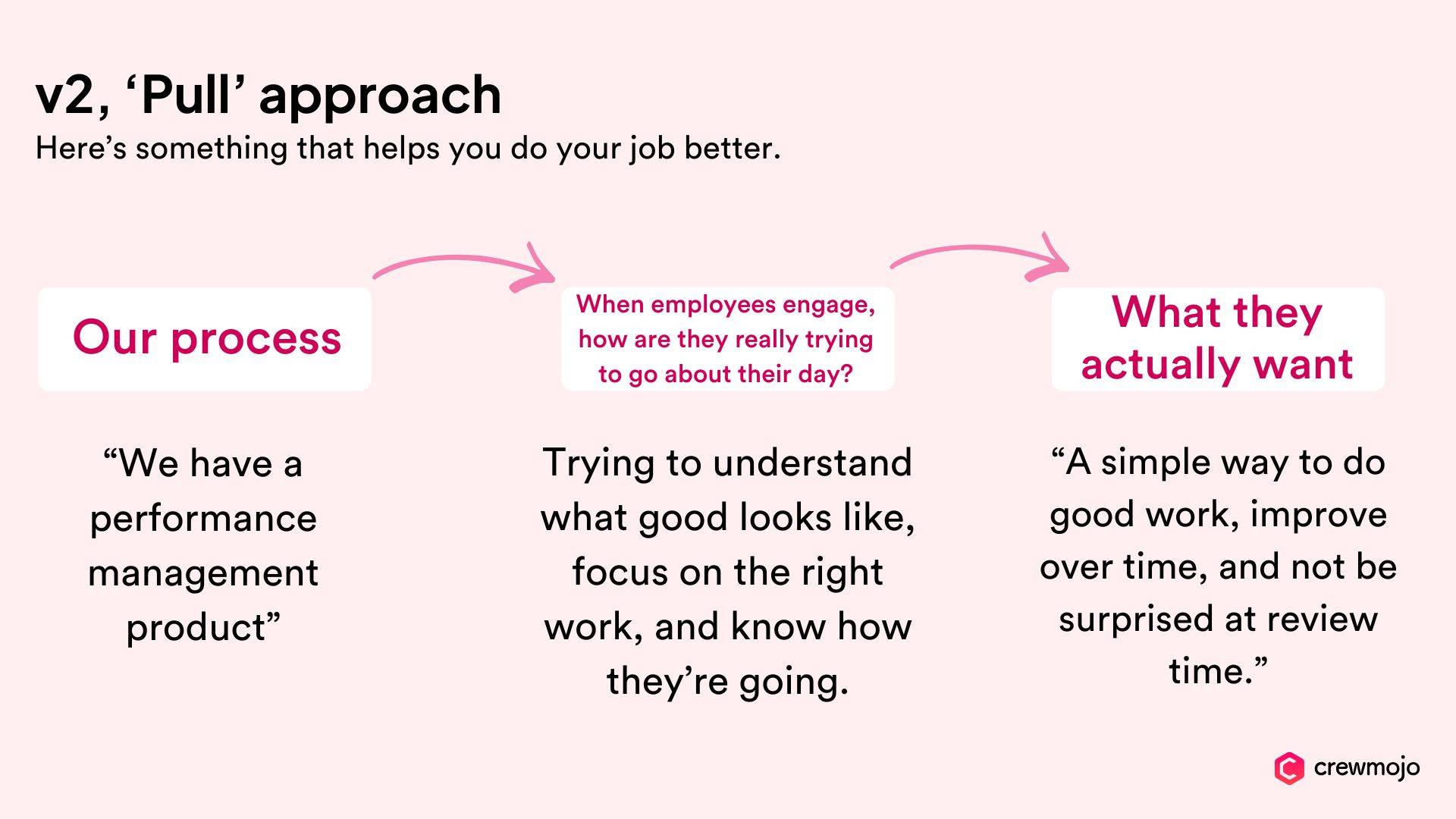 - Pull exists silently - teams already have ways they try to get clarity, feedback, and performance assessment… with or without HR.